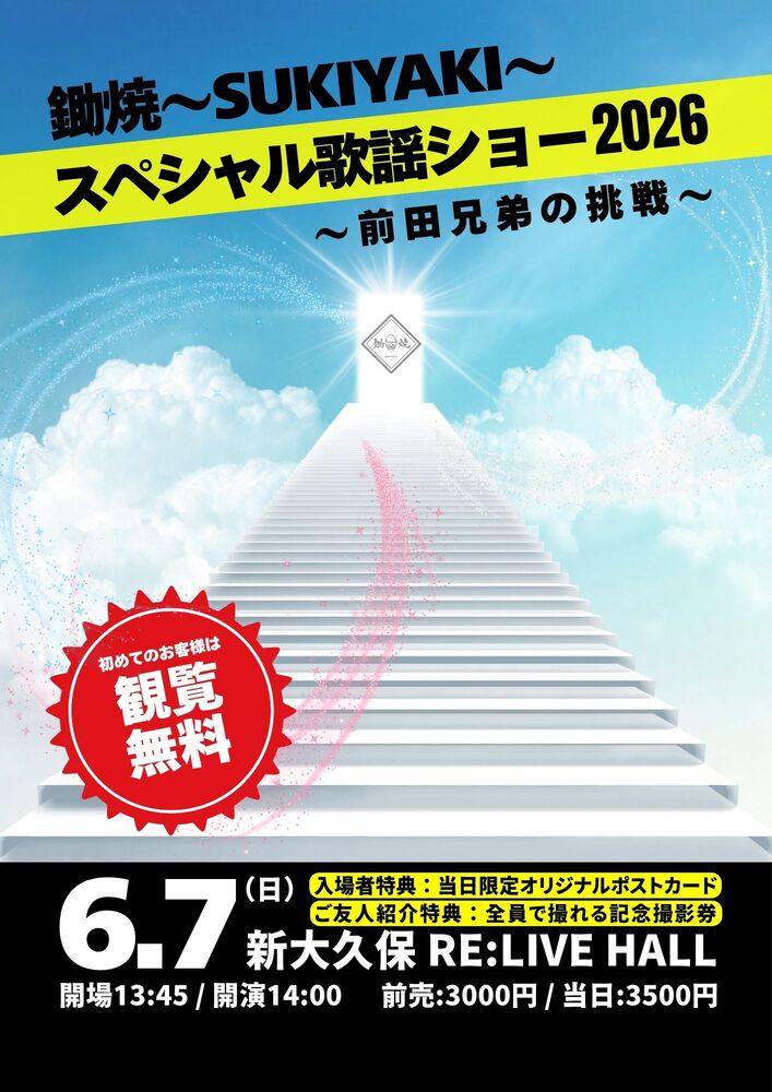 【チケット】6/7(日)『鋤焼〜SUKIYAKI〜スペシャル歌謡ショー2026〜前田兄弟の挑戦〜』FC先行チケット
